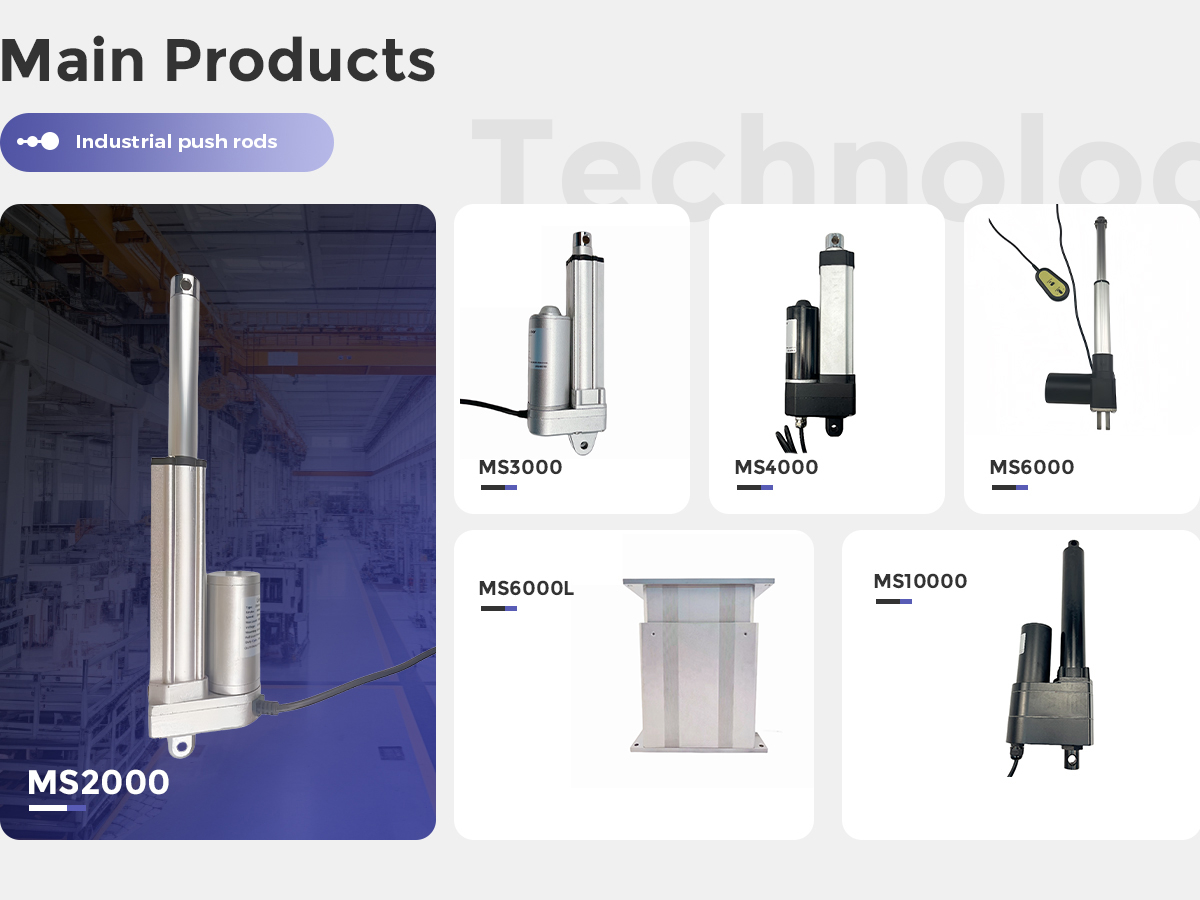 ผลิตภัณฑ์หลัก:มอเตอร์แบบก้านดันชนิดปากกาแอคชูเอเตอร์เชิงเส้นไฟฟ้า